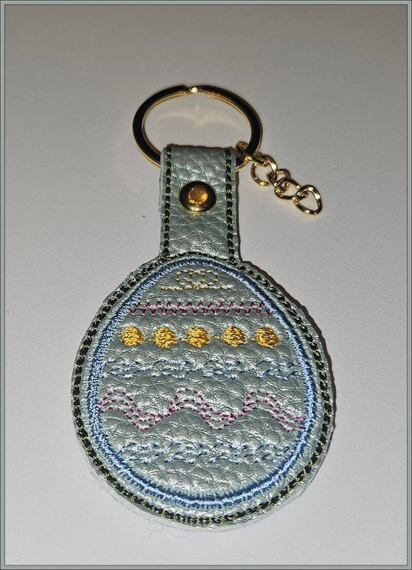 Porte clé ITH (IN The Hoop) en forme d'Œuf de Pâques. Plusieurs versions disponible.