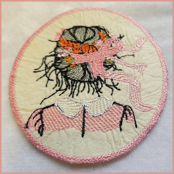 Ajoutez une touche d’élégance et de mystère à vos vêtements et accessoires avec cet écusson brodé représentant une silhouette de femme aux cheveux noirs ornés d’un ruban, sublimée par un effet scintillant grâce à l’utilisation de papier Mylar. ✨