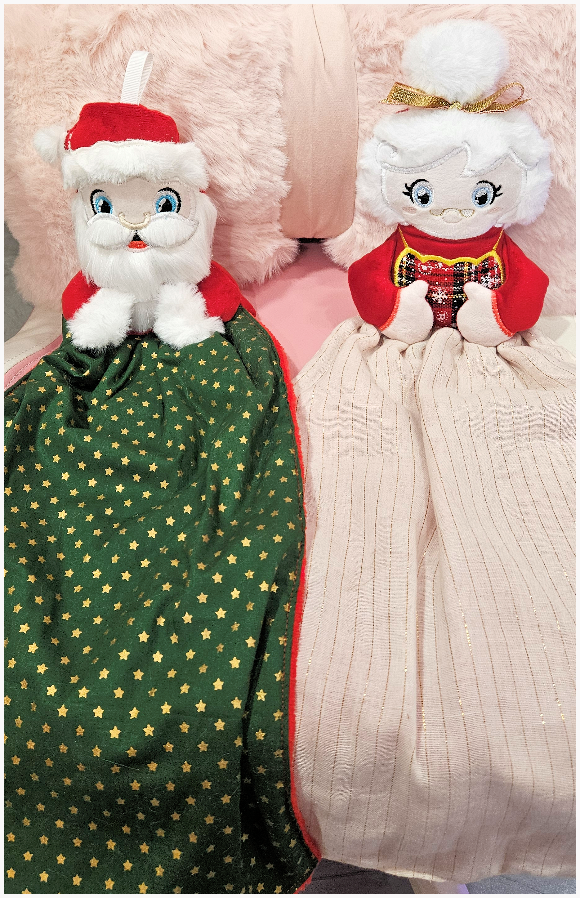 Ces torchons essuie-mains décoratifs Père Noël et Mère Noël ont été réalisés pour apporter une touche festive et chaleureuse à la cuisine pendant les fêtes de fin d’année.